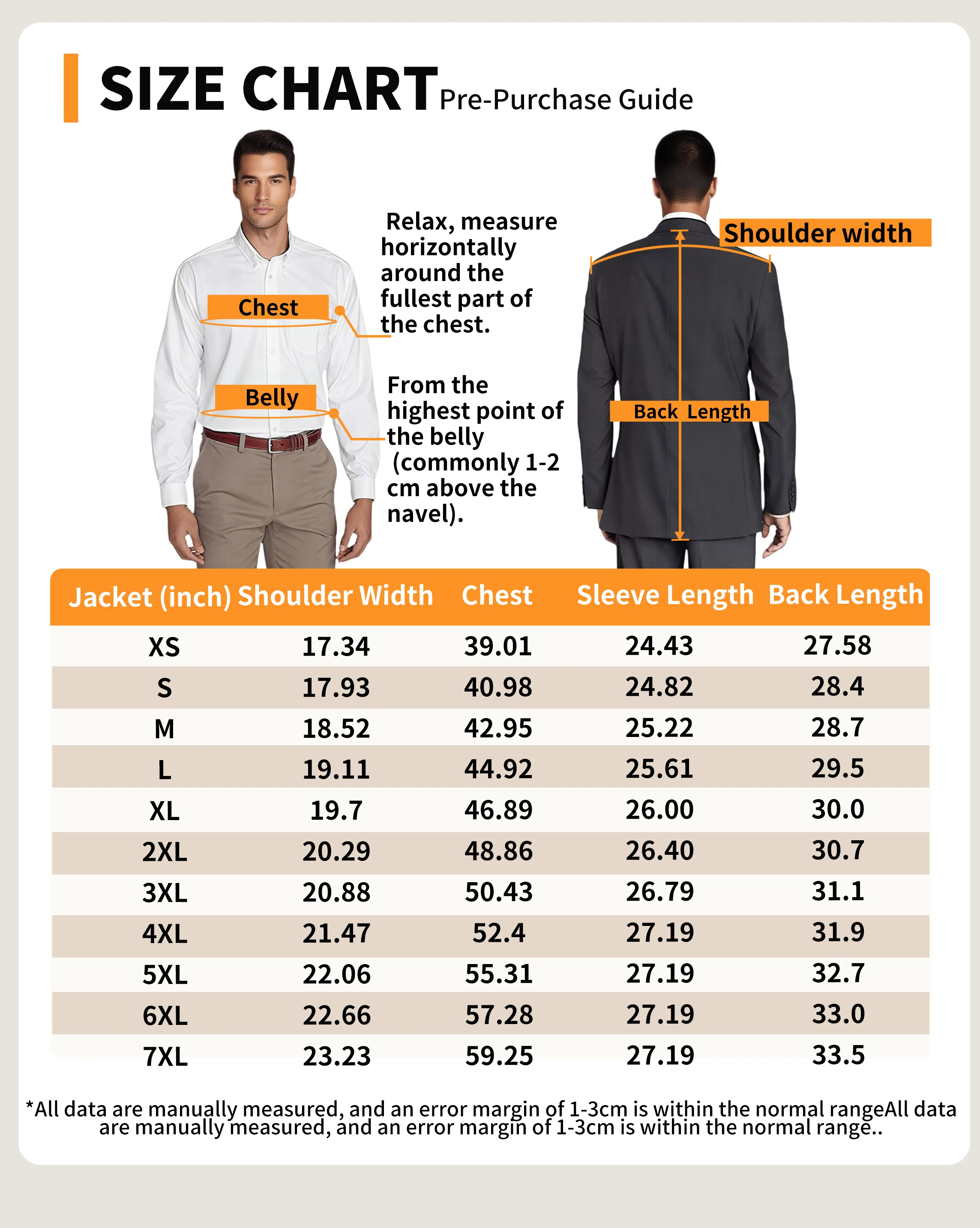•Due to everyone's different dressing styles and preferences, it is recommended to personally measure your own body size and refer to the size chart