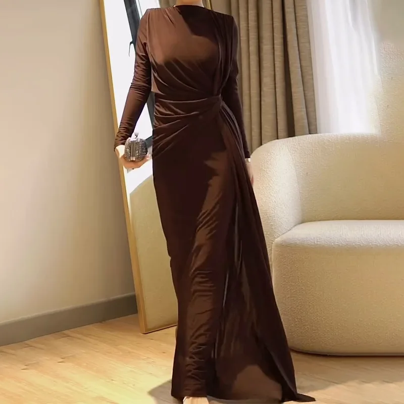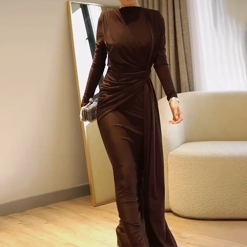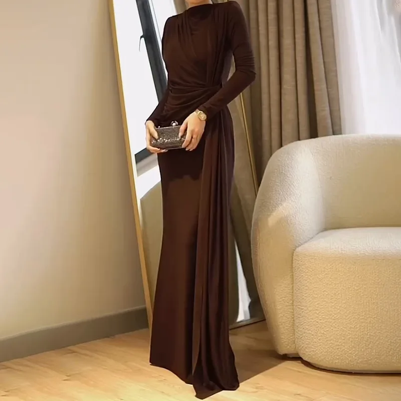 Elegant Long Sleeve Solid Color Dress Fashion Solid Color Women's Dress