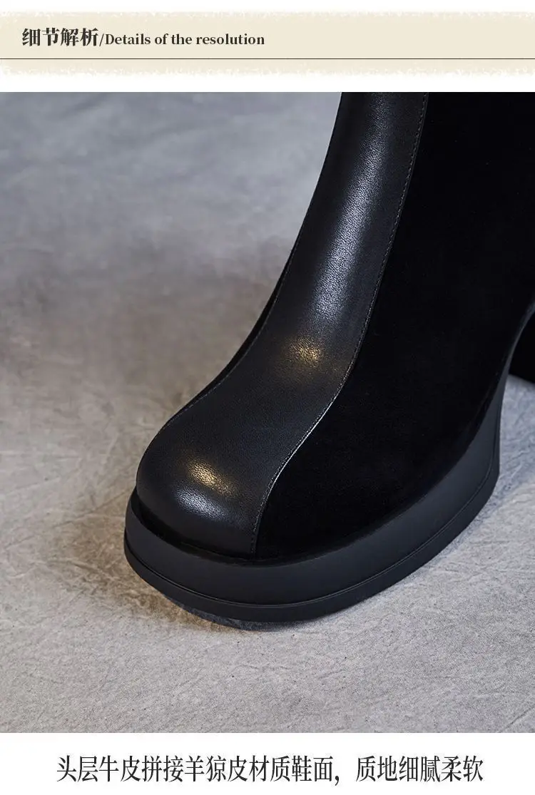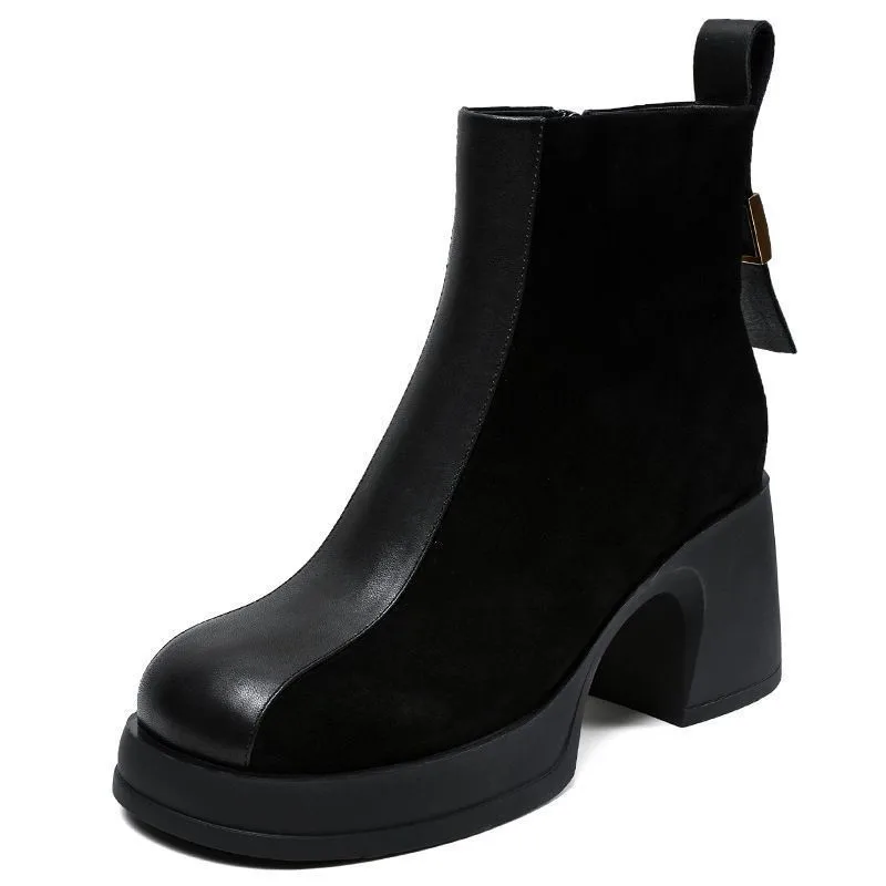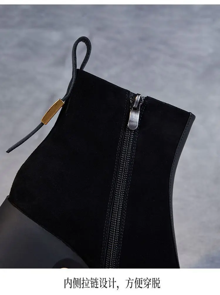 Women's shoes casual fashion short boots with patchwork thick sole thick heel boots